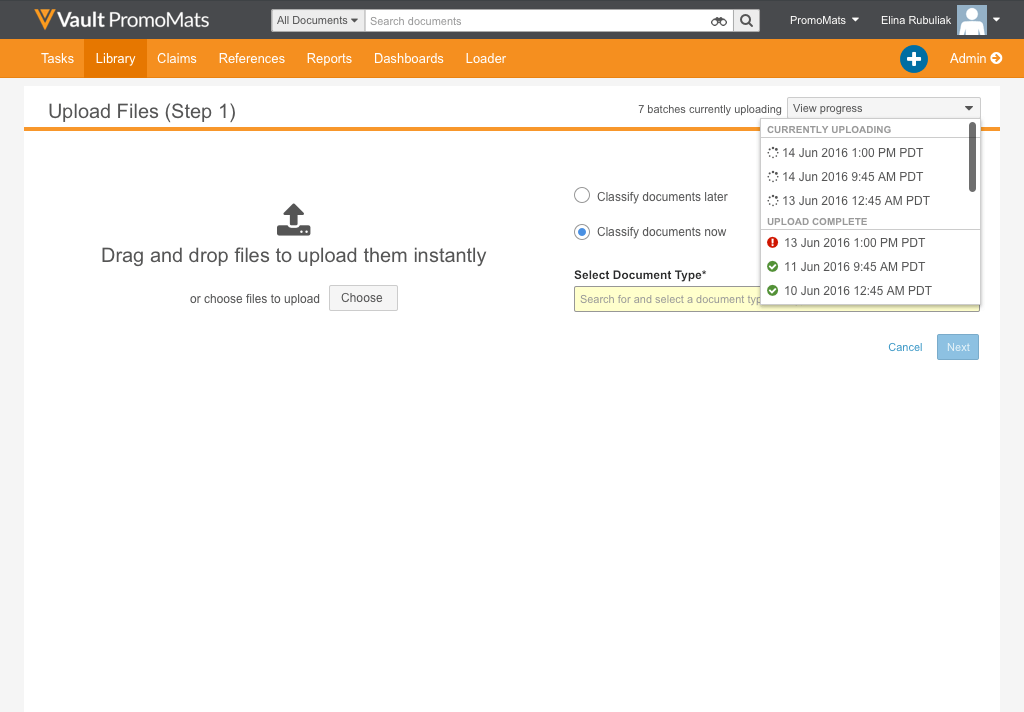 This enhancement to Vault’s platform upload expands functionality to allow for the bulk upload of many documents in asynchronous batches.
